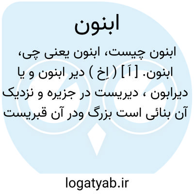 ابنون. [ اَ ] ( اِخ ) دیر ابنون و یا دیرابون، دیریست در جزیره و نزدیک آن بنائی است بزرگ ودر آن قبریست کلان و گویند قبر نوح علیه السلام است.