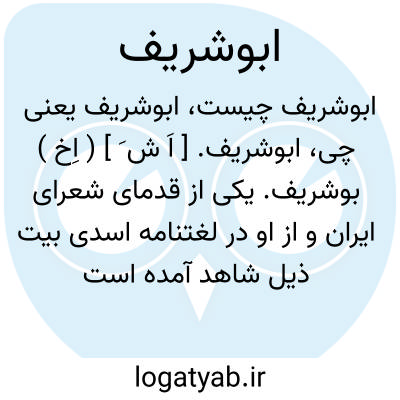 ابوشریف. [ اَ ش َ ] ( اِخ ) بوشریف. یکی از قدمای شعرای ایران و از او در لغتنامه اسدی بیت ذیل شاهد آمده است: