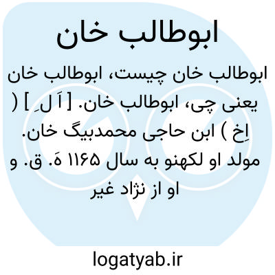 ابوطالب خان. [ اَ ل ِ ] ( اِخ ) ابن حاجی محمدبیگ خان. مولد او لکهنو به سال 1165 هَ. ق. و او از نژاد غیر هندی و ظاهراً ایرانی یا ترک است وی در آغاز، عمل دار اتاوه و بعض نواحی دیگر بود و به مناصب مختلفه رسید و در سنه 1214 هَ. ق. سفری به بلادفرنگ کرد و تا 1217 هَ. ق. در آن دیار ببود و چون به کلکتّه بازگشت از دیده های خویش به اروپا سفرنامه ای کرد و آن در 1221 هَ. ق. به نام مسیر طالبی منتشرگشت و به سال 1223 هَ. ق. به انگلیسی و در 1235 هَ. ق. به فرانسه ترجمه شد و در پاریس به طبع رسید.