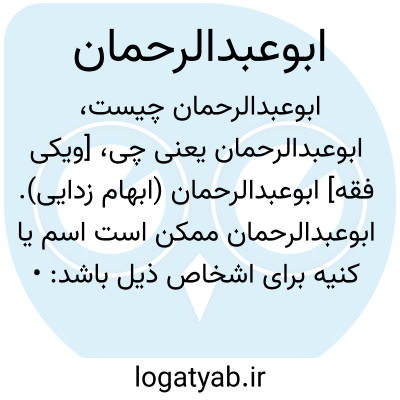 [ویکی فقه] ابوعبدالرحمان (ابهام زدایی). ابوعبدالرحمان ممکن است اسم یا کنیه برای اشخاص ذیل باشد: • ابوعبدالرحمان ابن مبارک، اِبْن ِ مُبارَک، ابوعبدالرحمان عبدالله بن مبارک حنظلی مروزی (۱۱۸-۱۸۱ق /۷۳۶-۷۹۷م )، از فقیهان و اصحاب حدیث • ابوعبدالرحمان ابن مسعود، اِبْن مَسْعود، ابوعبدالرحمان عبدالله بن مسعود بن غافل (د۳۲ یا ۳۳ق/۶۵۳م)، از اصحاب مشهور پیامبر (صلی الله علیه وآله وسلم)• ابو عبد الرحمن احمد بن شعیب، ابوعبدالرحمن، احمد بن علی بن شعیب نسائی، محدث معروف و مؤلف یکی از صحاح سته اهل سنت• ابوعبدالرحمان حیری، حیری، ابوعبدالرحمان اسماعیل بن احمد، مقری، مفسر، محدث و فقیه شافعی قرن چهارم و پنجم• ابوعبدالرحمان مزنی، بَلال بن حارث، ابوعبدالرحمان بلال بن حارث مُزَنی، صحابی و محدث