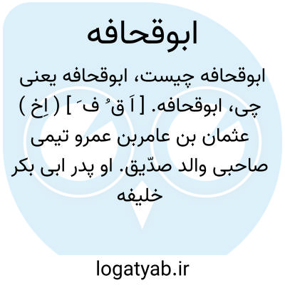 ابوقحافه. [ اَ ق ُ ف َ ] ( اِخ ) عثمان بن عامربن عمرو تیمی صاحبی والد صدّیق. او پدر ابی بکر خلیفه اول است و در فتح مکه مسلمانی پذیرفت و وی را نزد رسول صلوات اﷲ علیه بردند و موی سر همه سپید داشت و رسول فرمود شیخ را در خانه بایستی داشتن تا ما بزیارت او رفتیمی. وی چند ماه پس از مرگ پسر خویش ابی بکر در سال سیزدهم یا چهاردهم از هجرت به نودوهفت یا نودونه سالگی درگذشت.