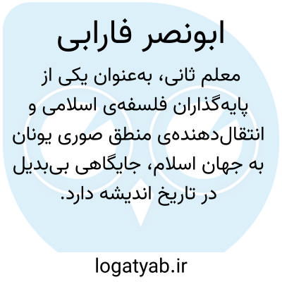 [ویکی فقه] معلم ثانی، موسس فلسفه اسلامی و انتقال دهنده منطق صوری یونانی به جهان اسلام نیز یاد می شود.