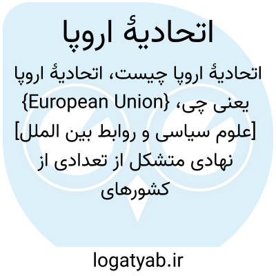 {European Union} [علوم سیاسی و روابط بین الملل] نهادی متشکل از تعدادی از کشورهای اروپایی با هدف یکپارچگی اقتصادی و توسعۀ اجتماعی و درنهایت یکپارچگی سیاسی میان آنها