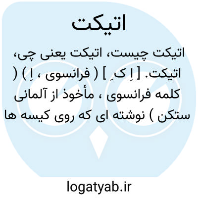 اتیکت. [ اِ ک ِ ] ( فرانسوی، اِ ) ( کلمه فرانسوی، مأخوذ از آلمانی ستکن ) نوشته ای که روی کیسه ها یا شیشه های دوا و مال التجاره برای تعیین محتویات و وزن آنها الصاق کنند. بَرچسب. || رسوم و آداب درباری.
