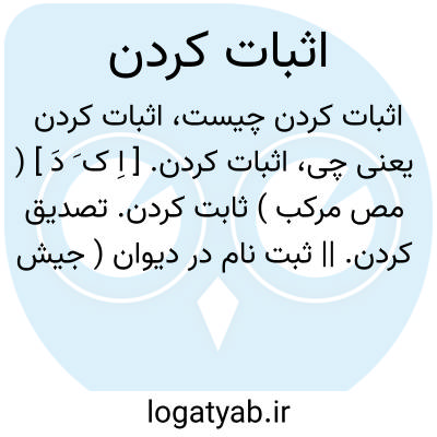 اثبات کردن. [ اِ ک َ دَ ] ( مص مرکب ) ثابت کردن. تصدیق کردن. || ثبت نام در دیوان ( جیش ) کردن: دانسته آید که آن کسان را که بنوی اثبات کرده است [ حاجب غازی ] هم بر آن جمله که وی دیده است و کرده است بداشته آید. ( تاریخ بیهقی ). امیر مسعود دست تلک [ هندی ] گشاده گردانید که چون از برغوزک بگذرد هرچه خواهد کند از اثبات کردن هندوان. ( تاریخ بیهقی ).