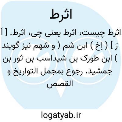 اثرط. [ اَ رَ ] ( اِخ ) ابن شم ( و شهم نیز گویند ) ابن طورک بن شیداسب بن ثور بن جمشید. رجوع بمجمل التواریخ و القصص ص 25 شود.