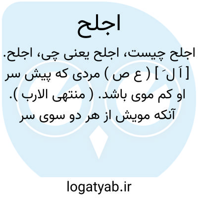 اجلح. [ اَ ل َ ] ( ع ص ) مردی که پیش سر او کم موی باشد. ( منتهی الارب ). آنکه مویش از هر دو سوی سر رفته بود. آن که موی از دو سوی پیشانی او بشده باشد. ( تاج المصادر ). || هودج پست. || سقف که بر اطرافش دیوار نباشد. ( منتهی الارب ). ( معنی اخیر در تاج العروس یافته نشد ).