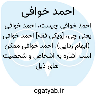[ویکی فقه] احمد خوافی (ابهام زدایی). احمد خوافی ممکن است اشاره به اشخاص و شخصیت های ذیل باشد: • احمد بن محمد خوافی، ابومظفر احمدبن محمد خوافی، فقیه و محدّث شافعی قرن پنجم• غیاث الدین پیراحمد خوافی، پیرْاَحْمَدِ خوافی، غیاث الدین (د ۸۵۷ق/۱۴۵۳م)، وزیر شاهرخ تیموری و جانشینان او