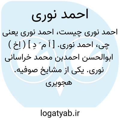 احمد نوری. [ اَ م َ دِ ] ( اِخ ) ابوالحسن احمدبن محمد خراسانی نوری. یکی از مشایخ صوفیه. هجویری گوید: وی را مذهبی مخصوص است در تصوف که بمذهب نوری معروف است و پیروان او را نوریه یا نوریان نامند. او رفیق جنید و مرید سری بود و بسیاری از مشایخ از جمله احمدبن ابی الحواری را دیده است. و او راست: اعزالأشیاء فی زماننا شیئان: عالم یعمل بعلمه و عارف ینطق عن الحقیقة. و رجوع به ابوالحسن نوری شود.