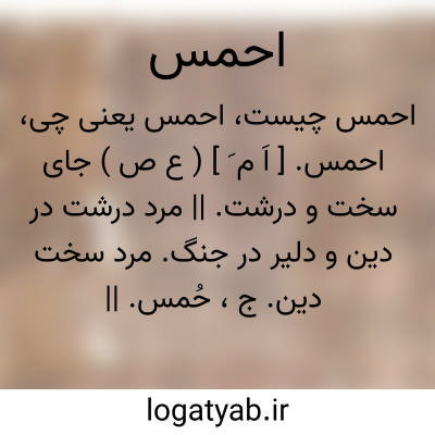 احمس. [ اَ م َ ] ( ع ص ) جای سخت و درشت. || مرد درشت در دین و دلیر در جنگ. مرد سخت دین. ج، حُمس. || مرد دلاور. مرد شجاع. دلیر. سخت دلیر. ( زوزنی ). || سال سخت و قحطناک. ج، احامس، حُمس.