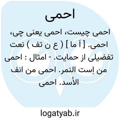 لغت نامه دهخدا احمی. [ اَ ما ] ( ع ن تف ) نعت تفضیلی از حمایت.- امثال: احمی من اِست النمر. احمی من انف الأسد. احمی من مجیرالجراد.رجوع به مجمعالامثال میدانی شود.