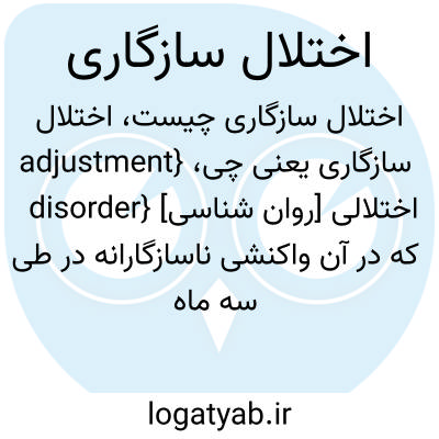 {adjustment disorder} [روان شناسی] اختلالی که در آن واکنشی ناسازگارانه در طی سه ماه پس از حادثه ای تنش زا نظیر طلاق و بازنشستگی و تولد فرزند و بحران کاری و مشکلات حاد تحصیلی در فرد رخ می دهد