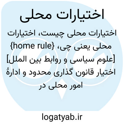 {home rule} [علوم سیاسی و روابط بین الملل] اختیار قانون گذاری محدود و ادارۀ امور محلی در شهرستان یا شهر به دست اهالی آن