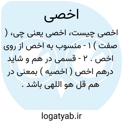 ( صفت ) ۱ - منسوب به اخص از روی اخص. ۲ - قسمی در هم و شاید درهم اخص ( اخصیه ) بمعنی در هم قل هو اللهی باشد.