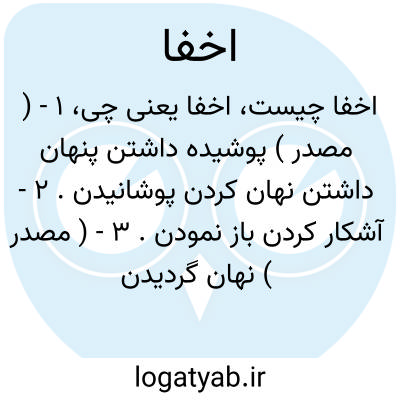 [ویکی فقه] اخفا (علوم قرآنی). پنهان کرن حرف هنگام تلفظ را اخفا گویند.