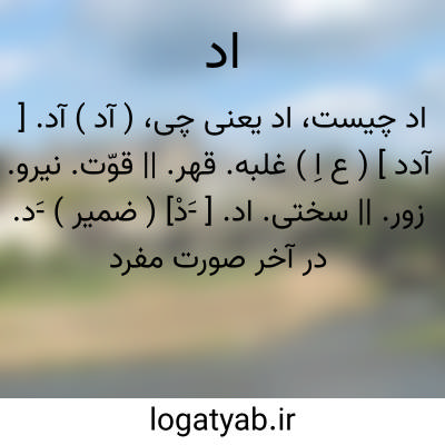 ( آد ) آد. [ آدد ] ( ع اِ ) غلبه. قهر. || قوّت. نیرو. زور. || سختی.