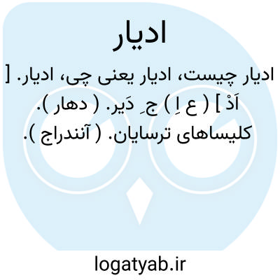 ادیار. [ اَدْ ] ( ع اِ ) ج ِ دَیر. ( دهار ). کلیساهای ترسایان. ( آنندراج ).