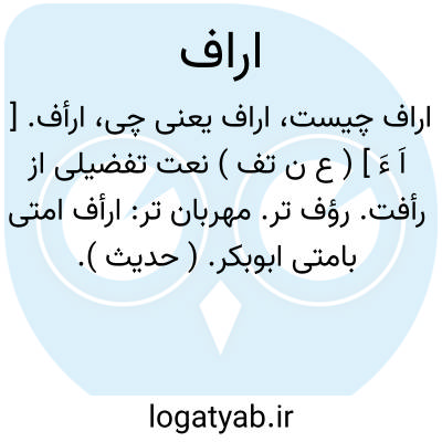 ارأف. [ اَ ءَ ] ( ع ن تف ) نعت تفضیلی از رأفت. رؤف تر. مهربان تر: ارأف امتی بامتی ابوبکر. ( حدیث ).