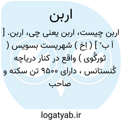 اربن. [ اَ ب ُ ] ( اِخ ) شهریست بسویس ( ثورگُوی ) واقع در کنار دریاچه کُنستانس، دارای 9500 تن سکنه و صاحب کارخانه هاست.
