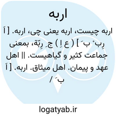 اربه. [ اَ رِب ْ ب َ ] ( ع اِ ) ج ِ رِبّة، بمعنی جماعت کثیر و گیاهیست. || اهل عهد و پیمان. اهل میثاق.