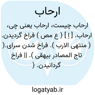ارحاب. [ اِ ] ( ع مص ) فراخ گردیدن. ( منتهی الارب ). فراخ شدن سرای.( تاج المصادر بیهقی ). || فراخ گردانیدن. ( منتهی الارب ). فراخ کردن چیزی. ( تاج المصادر بیهقی ).