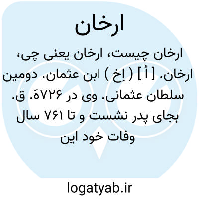 ارخان. [ اُ ] ( اِخ ) ابن عثمان. دومین سلطان عثمانی. وی در 726هَ. ق. بجای پدر نشست و تا 761 سال وفات خود این مقام داشت. شهرهای بروسه و نیقیه را بگرفت و ممالک امرای کراسی را که با خاک او مجاور بودند متصرف شد و لشکریان ینی چری را که چندین قرن وسیله عمده فتوحات سلاطین عثمانی بود تشکیل کرد. ( طبقات سلاطین اسلام ص 169 و 175 ).