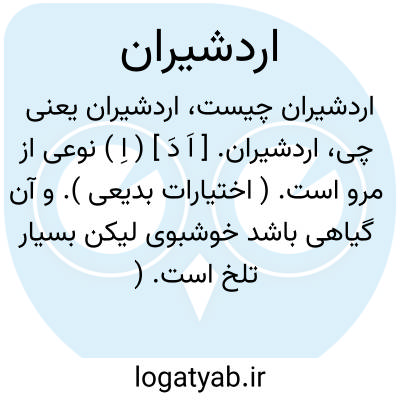 اردشیران. [ اَ دَ ] ( اِ ) نوعی از مرو است. ( اختیارات بدیعی ). و آن گیاهی باشد خوشبوی لیکن بسیار تلخ است. ( برهان قاطع ) ( آنندراج ) ( جهانگیری ). نام داروئی است که بعربی مرو گویند. ( سروری ) ( شعوری ) ( رشیدی ). ارما. اردشیردارو. مرماهوس. ( در نسخه ای: مرماحوز ). ( تحفه حکیم مؤمن ).