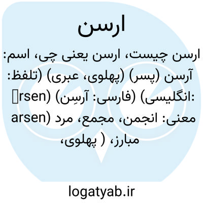 ارسن. [ اَ س َ ] ( اِ ) انجمن. مجلس. محفل. ( جهانگیری ) ( برهان ). مجمع. ( برهان ). مجلس بزم.
