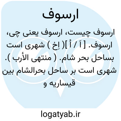 ارسوف. [ اَ / اُ ]( اِخ ) شهری است بساحل بحر شام. ( منتهی الأرب ). شهری است بر ساحل بحرالشام بین قیساریه و یافا و در آن گروهی از مُرابطین بودند واز آن جمله است ابویحیی زکریابن نافع الارسوفی و غیره و آن در اقلیم سوم است. طول وی 56 درجه و 50 دقیقه و عرض 32 درجه و نصف و ربع و پیوسته در دست مسلمانان بود تا کندفری صاحب قدس آنرا در سنه 494 هَ. ق. بگشود و یاقوت گوید تا اکنون در دست آنان است. ( معجم البلدان ). || بستانی گوید شهری است در فلسطین واقع در ساحل نزدیک مصب نهر موسوم به نهر الفالح و جنگ بین ریچارد پادشاه فرنگ و صلاح الدین ایوبی در این شهر بود و آن به سال 587 هَ. ق. بود. رجوع بضمیمه معجم البلدان شود.