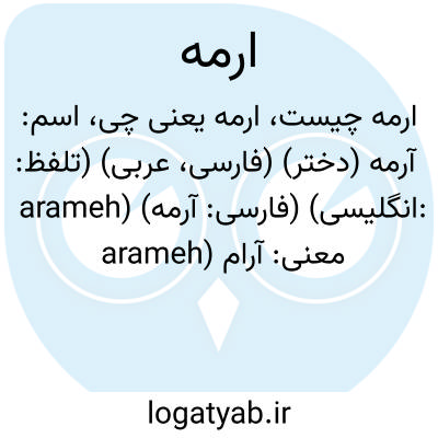 اسم: آرمه (دختر) (فارسی، عربی) (تلفظ: arameh) (فارسی: آرمه) (انگلیسی: arameh)