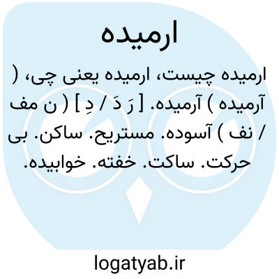 ارمیده. [ اَ دَ / دِ ] ( ن مف / نف ) مخفف آرمیده.آسوده. مستریح. ساکن. بیحرکت. قرارگرفته. ساکن شده. ( برهان ). ارمنده. ( جهانگیری ). رجوع به آرمیده شود.