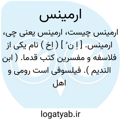 ارمینس. [ اِ ن ُ ] ( اِخ ) نام یکی از فلاسفه و مفسرین کتب قدما. ( ابن الندیم ). فیلسوفی است رومی و اهل زمان خویش از او استفاده میکردند و او بعضی کتب ارسطو را تشریح کرده است. ( تاریخ الحکمای قفطی ص 60 و 125 ). ارمینس. [ ] ( اِخ ) معلم طب جالینوس. ( عیون الانباء ج 1 ص 36 و 82 ). ارمینس. [ اَ رِ م ِ ن ِ ] ( اِخ ) نام یکی از شاگردان هرمس و هرمس یکی از کتابهای خویش را در صنعت کیمیا بنام یا خطاب به او کرده است.