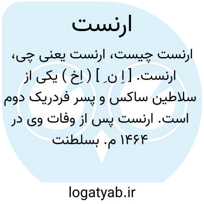 [ویکی فقه] ارنست (ابهام زدایی). ارنست ممکن است اسم برای اشخاص ذیل باشد: • ارنست اورسل، عالم به تاریخ و ادبیات و سیاست• ارنست فلویر، مکتشف، سیاح، نویسنده انگلیسی، در سال ۱۸۵۲م