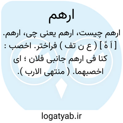 ارهم. [ اَ هََ ] ( ع ن تف ) فراختر. اخصب: کنا فی ارهم جانبی فلان؛ ای اخصبهما. ( منتهی الارب ).