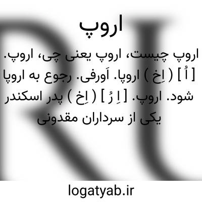 اروپ. [ اِ رُ ] ( اِخ ) پدر اسکندر یکی از سرداران مقدونی بزمان فیلیپ و اسکندر مقدونی. ( ایران باستان ص 1231 ).