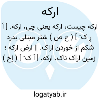 ارکه. [ اَ رِ ک َ ] ( ع ص ) شتر مبتلی بدرد شکم از خوردن اراک. || ارض ارکه؛ زمین اراک ناک.