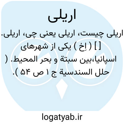 اریلی. [ ] ( اِخ ) یکی از شهرهای اسپانیا،بین سبتة و بحر المحیط. ( حلل السندسیة ج 1 ص 54 ).