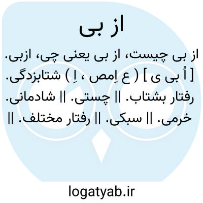 ازبی. [ اُ بی ی ] ( ع اِمص، اِ ) شتابزدگی. رفتار بشتاب. || چستی. || شادمانی. خرمی. || سبکی. || رفتار مختلف. || شر. بدی. || کاری بزرگ. ( منتهی الارب ). ج، اَزابی.