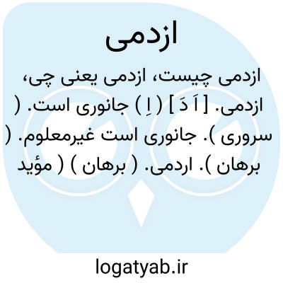 ازدمی. [ اَ دَ ] ( اِ ) جانوری است. ( سروری ). جانوری است غیرمعلوم. ( برهان ). اردمی. ( برهان ) ( مؤید الفضلاء ) ( مجمع الفرس ).