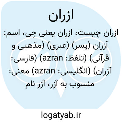 اسم: آزران (پسر) (عبری) (مذهبی و قرآنی) (تلفظ: azran) (فارسی: آزران) (انگلیسی: azran)