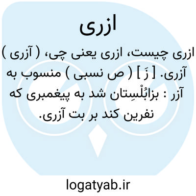 ( آزری ) (زَ ) (ص نسب. ) منسوب به آزر جد مادری حضرت ابراهیم (ع ) یا عمّ او که آزر بتگر هم گفته شده.