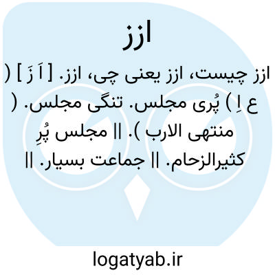 ازز. [ اَ زَ ] ( ع اِ ) پُری مجلس. تنگی مجلس. ( منتهی الارب ). || مجلس پُرِ کثیرالزحام. || جماعت بسیار. || حسابی از سَیر ماه و آن فصول و ایامی که داخل ماهها و سالهاست. ( منتهی الارب ).