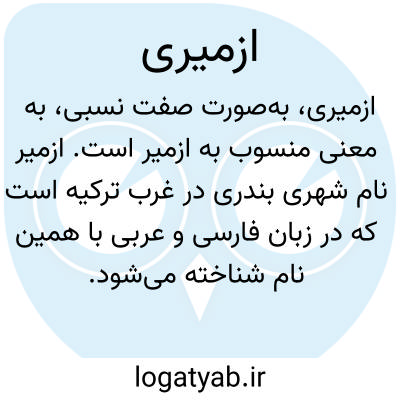 ازمیری، به‌صورت صفت نسبی، به معنی منسوب به ازمیر است. ازمیر نام شهری بندری در غرب ترکیه است که در زبان فارسی و عربی با همین نام شناخته می‌شود. این صفت معمولاً برای اشاره به افراد، اشیا یا ویژگی‌های مرتبط با این شهر به کار می‌رود. یکی از شخصیت‌های مشهور با این نسبت، سلیمان ازمیری است که در منابع تاریخی و فرهنگی از او یاد شده است. برای کسب اطلاعات بیشتر درباره این شخصیت، می‌توان به منابعی مانند معجم المطبوعات مراجعه کرد که در آن به آثار و زندگی وی پرداخته شده است. در متون کهن و جدید فارسی، نسبت‌های مکانی مانند ازمیری برای شناسایی دقیق‌تر افراد و تمایز آنان از هم نامانشان به کار می‌روند. این شیوه نام‌گذاری، علاوه بر نشان‌دادن اصالت جغرافیایی، در مستندسازی تاریخی نیز اهمیت بسیاری دارد.