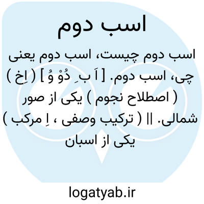 اسب دوم. [ اَ ب ِ دُوْ وُ ] ( اِخ ) ( اصطلاح نجوم ) یکی از صور شمالی. || ( ترکیب وصفی، اِ مرکب ) یکی از اسبان دهگانه سباق عرب. رجوع به مصلی شود.