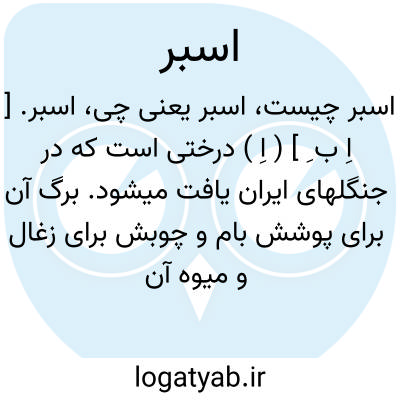 اسبر. [ اِ ب ِ ] ( اِ ) درختی است که در جنگلهای ایران یافت میشود. برگ آن برای پوشش بام و چوبش برای زغال و میوه آن برای تغذیه گاو است.
