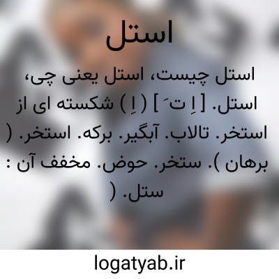 استل. [ اِ ت َ ] ( اِ ) شکسته ای از استخر. تالاب. آبگیر. برکه. استخر. ( برهان ). ستخر. حوض. مخفف آن: ستل. ( جهانگیری ).