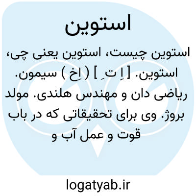 استوین. [ اِ ت ِ ] ( اِخ ) سیمون. ریاضی دان و مهندس هلندی. مولد بروژ. وی برای تحقیقاتی که در باب قوت و عمل آب و کسور اعشاری دارد شهرت یافته است. ( 1548 - 1620 م. ).