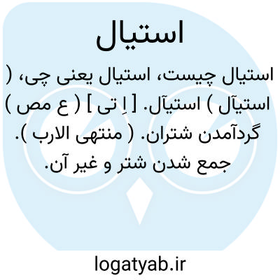 ( استیآل ) استیآل. [ اِ تی ] ( ع مص ) گردآمدن شتران. ( منتهی الارب ). جمع شدن شتر و غیر آن.
