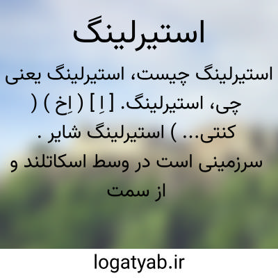 استیرلینگ. [ اِ ] ( اِخ ) ( کنتی... ) استیرلینگ شایر. سرزمینی است در وسط اسکاتلند و از سمت شمال به پرتشایر و از سوی شمال شرقی به کلاکمانان شایر و خلیج فرث از جانب جنوب شرقی به لین لیث گوشیر از جهت جنوب به لانارک و قسمت مجزای دمبارتون شایر محدود است. مساحت سطح آن 288842 آکر یعنی 4513 میل مربع است. رودخانه های عمده آن عبارت است از نهر فرث که پیچ و خمهای آن حدود شمالی کشور را تشکیل میدهد و نهرهای شایان ذکر دیگر عبارتند از نهر کارون که از تپه های کمپسی آغاز و اکثر بسوی مشرق روان است و در مسافت 25 میلی به فورث گرنجموث وارد می شود. دیگر نهر اندریک که از تپه های فینترای بنای جریان را گذارده اوّل بسوی مشرق، و بعد بجانب جنوب، و بالاخره با یک جریان مارپیچی بطرف مغرب جاری میشود و پس از قطع مسافت 31 میل وارد دریاچه لمند می شود. دیگر نهر کلوین که از کیلسیث سرچشمه گرفته بعد از طی 22 میل در طرف جنوب غربی وارد کلاید واقع در جوار گلاسکو می گردد. در سال 1891 م. نفوس این سرزمین به 118021 تن بالغ میشد. در سنه 1901 م. به 142291 تن رسید یعنی 315 تن در هر میل مربع. در سال 1901 م. فقط ده تن بزبان گئلیک و 2014تن بزبان گئلیک و انگلیسی تکلم می کردند. شهرهای عمده این ناحیت عبارت است از: فالکِرک، اِستِرلینگ، گرانج مَوث، کیلسیث، اِستنهوس میوئیر، دِنی و دونیپیس، پُل ِ آلان، پُل ِ بُنی. ( از دائرةالمعارف بریتانیکا ).