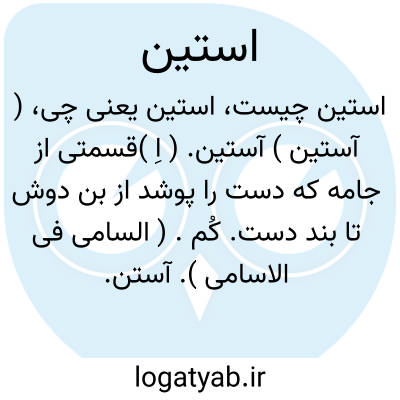( آستین ) آستین. ( اِ )قسمتی از جامه که دست را پوشد از بن دوش تا بند دست. کُم. ( السامی فی الاسامی ). آستن. آستی: